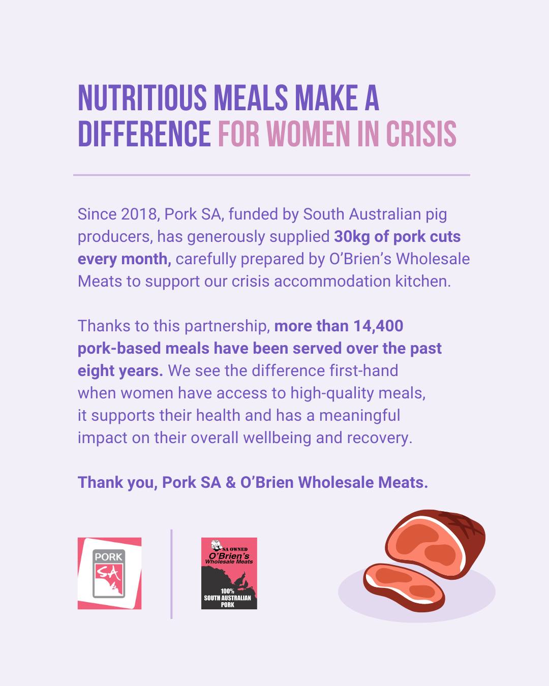 At Pork SA, we believe food is more than fuel — it is a foundation for stability, dignity, and long-term positive change. Supporting Catherine House aligns with our commitment to strengthening communities and making a tangible difference where it matters most.